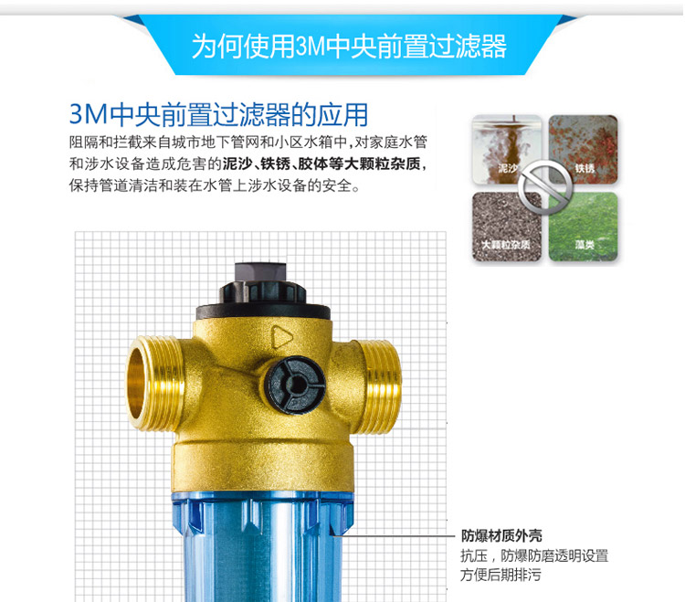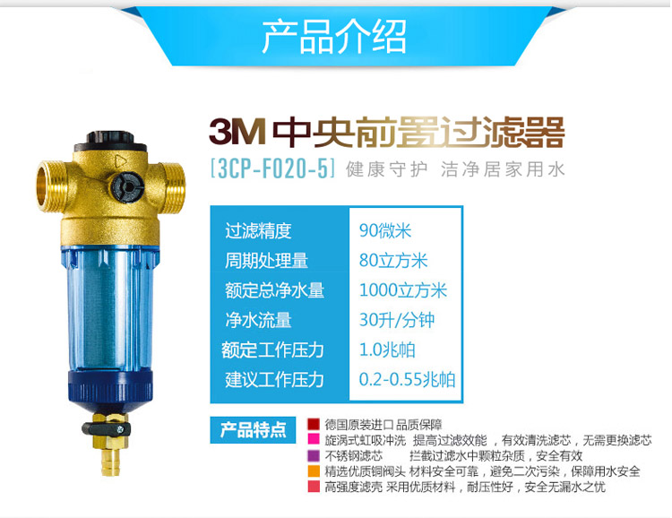3M 3CP-F020-5家用前置净水器无需换芯中央前置过滤器